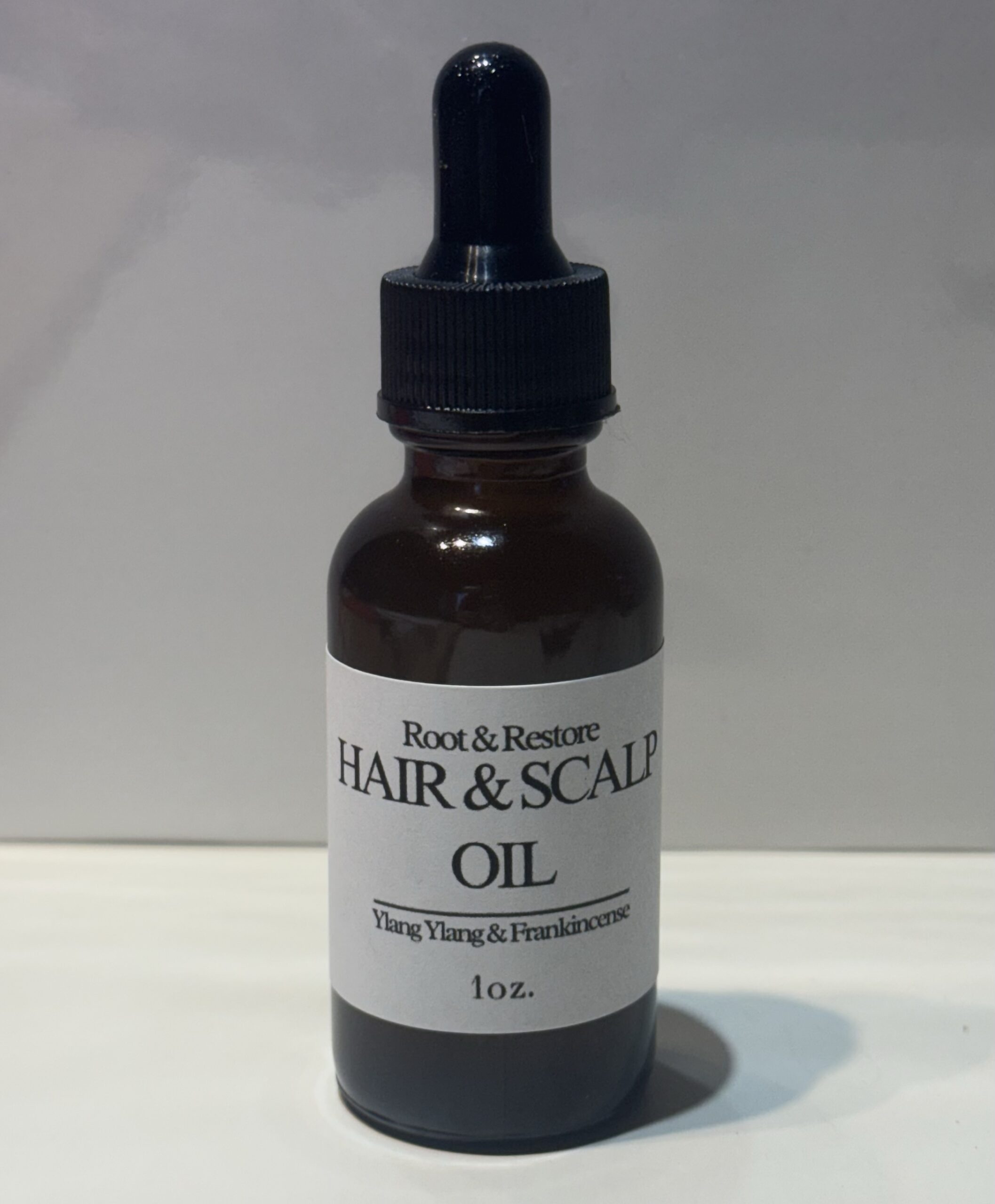 Root & Restore Hair & Scalp Oil is a botanical blend created to care for both scalp and hair while offering a calming, grounding aroma.