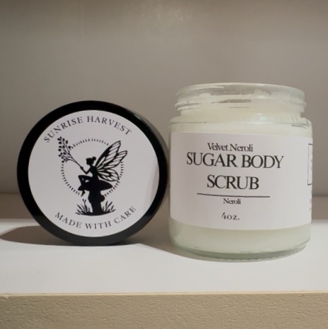 Velvet Neroli Sugar Body Scrub is a soft, luxurious exfoliant designed to polish the skin while maintaining moisture and balance.